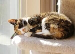"I hadn't planned to adopt a cat this year, but when I saw Kyoshi, I couldn't pass up the opportunity of bringing her home...although she was initially a bit anxious, Kyoshi became more confident and playful in just a couple of days as she grew used to her furever home. Then, my brother and I slowly began introducing her to his cat Cersei (formerly Goose, another AWLA Arlington alum) once she became comfortable. It was a long process, but working remotely helped us monitor their progress and give them space when needed. They are now pretty much besties who will chase and wrestle each other, or watch birds and people pass by the window. I've even caught Kyoshi licking Cersei's head a couple of times, particularly to comfort her when there's a thunderstorm.