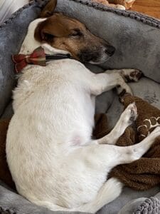 "Frankie, aka Taffy, is really taking to his new home and adjusting very well! He is another mommas boy. This is him taking a nap, while his mom washes all of the dog hair out of the couch covers. So glad we were able to take Frankie home and he is able to live out his senior years in peace and happiness!"