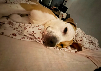 “Barbara is a gentle gem and a true cuddle bug who loves nothing more than being by your side. She happily follows you around, soaking up affection and offering the sweetest companionship. With her calm, easygoing demeanor, she brings a sense of peace to everyday. Barbara gets along beautifully with other dogs and charms everyone she meets. She adores the outdoors, exploring new hikes, and her tail is always wagging – a constant reminder of her joyful, loving spirit. She can be a little shy at first, but becomes your best friend quickly, loving a late morning Saturday or seeing you off on the way to work. ”