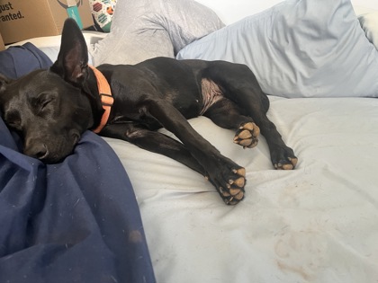 Bonita is as pretty as her name implies! She can be a little shy at first but warms up quickly and becomes an incredibly affectionate cuddle bug. She loves to stick close to people and snuggle as often as possible. She’s curious, but not destructive, and sometimes she’ll find something to bring over to you. She’s loyal, happy, and very playful. When she isn’t napping, she loves long walks, playtime with other dogs, and learning new tricks. She’s working on sit, speak, and shake right now.