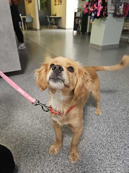 Charlie is silly, upbeat, and always seems ready to brighten your day with his joyful energy. This a happy little guy has quickly won over staff with his goofy charm. Some say he gives serious Jim Carrey vibes, complete with expressive antics and a talent for making people laugh…and then there are the Grinch feet which add to his quirky appeal!