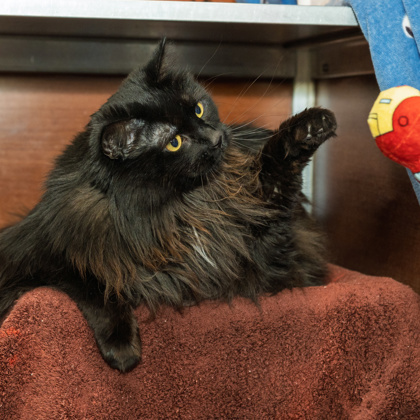 Chloe is a gorgeous, long-haired girl who has recently come into AWLA’s care. Her foster reports that Chloe is “the snuggliest girl.” She is happy to spend time with her foster family, as well as with guests, and gladly seeks out available laps.