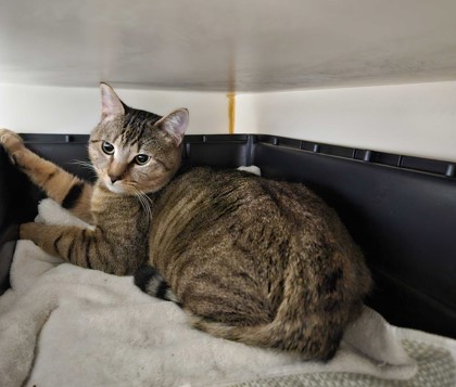 With a soft brown-and-gray coat and a big personality, this sweet boy is still settling into shelter life. He may seem a little shy at first, but give him a little time and patience, and you’ll discover the affectionate companion hiding underneath. He’s what some people call a “Velcro cat,” meaning he loves being close to his person and forming a strong bond. He’s also quite the talker and isn’t shy about sharing his thoughts with you throughout the day.