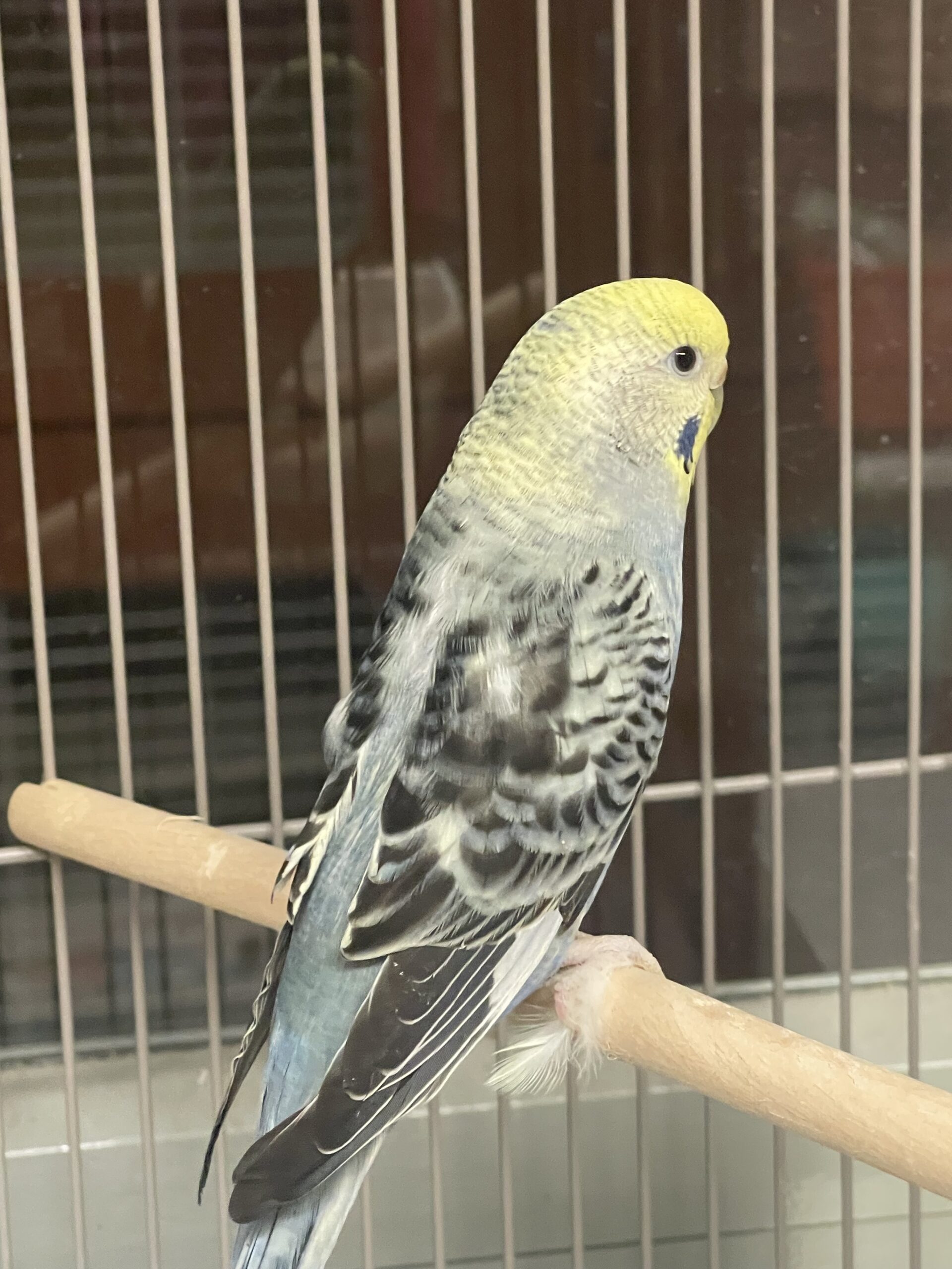 Meet Figs, Kiwano, and Blueberry – a delightful trio of parakeets who fill the shelter with cheerful chirps and bright energy! These three feathered friends are inseparable, bringing music and joy wherever they go. Together, they light up the adoptions lobby with their happy tweeting and playful personalities. Whether they’re chatting with each other or showing off their beautiful colors, they’re always a joy to watch. Figs, Kiwano, and Blueberry are looking for a home where they can keep spreading their sunshine and song every day.