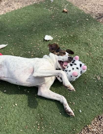 This playful, friendly pup with a big personality and lots of love to give is believed to be a hound mix. He’s very food-motivated, which makes him eager to learn and excited about training time. Frank loves interactive play and has a special weakness for squeaky toy they’re his absolute favorite! Frank is still working on his house-training skills, and like many dogs adjusting to new environments, he can become vocal when he’s feeling stressed. He’s also a bit sensitive to loud sounds and sudden movements, so he’ll do best in a calm, patient home that can help him feel safe and build confidence at his own pace. Once he settles in, Frank’s sweet, curious, and playful side really shines. Frank is looking for a family ready to give him structure, encouragement, and lots of toys, treats, and love along the way.