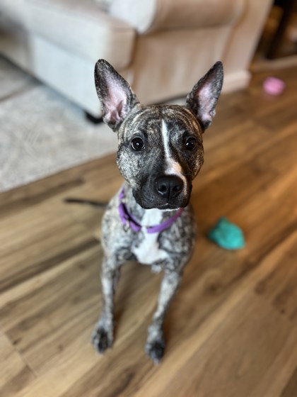 Isla truly shines with other dogs and would do best in a home with a confident, friendly canine companion who can help her feel secure and guide her through new experiences. She loves to play and interact with other dogs, though she can sometimes get a bit intense, so her playtime does best with supervision and gentle breaks to keep everyone comfortable.