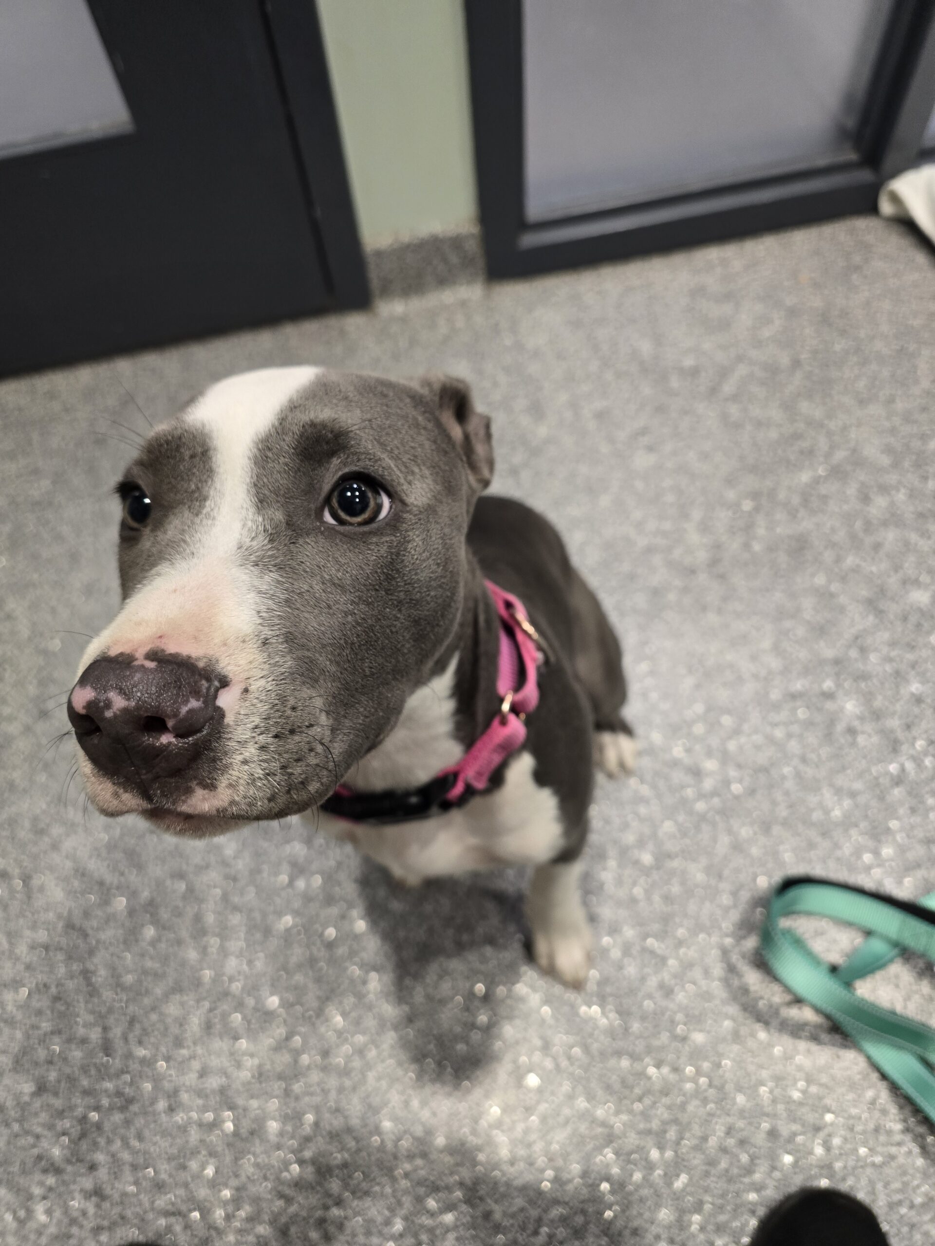 Lola can be a bit shy and fearful of new things, so she’s looking for patient adopters who can help her build confidence at her own pace. She’ll thrive in a calm environment with people who understand the ups and downs of puppyhood and are eager to continue her training and socialization.