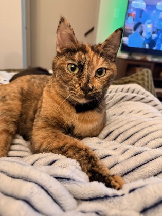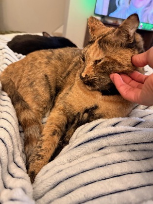 Mo can be shy and fearful at first, but once she has time to get comfortable (it took about two days in her new foster home), she’s the sweetest girl and provides endless entertainment! She is chatty and will loudly ask for attention and pets from her favorite people. She loves making biscuits, flopping at your feet for pets, and following you around to make sure you’re not doing anything exciting without her!