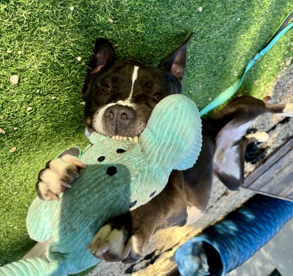 Seymour is a young, lovable dog with a personality as big as his ears – and trust us, he’s got the best ears in town! This sweet boy is a certified wiggle-butt who can’t help but show his joy the moment he sees you. He’s a big fan of hot dogs, loves his stuffies, and will proudly parade around with his favorite toys to make you smile.