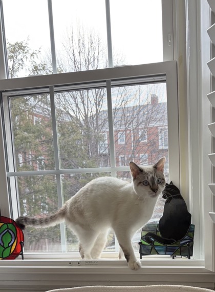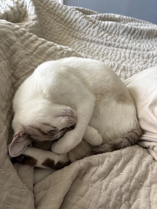 Toys are his favorite, and he’s always ready for a fun play session before curling up to relax. Snowball has been settling in wonderfully in foster and showing what a confident, happy guy he is. He’s eating well, staying hydrated, and using his litter box like a pro. Most of all, he’s been delightfully chatty! If you’re looking for a cat who will “talk” to you about his day and keep you company with sweet little conversations, Snowball is your guy.